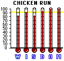 SUMMARY / COMMENTARY: Chicken Run (G) -- Chicken fun with amazing effort but with a touch of "adult humor." I apologize for taking so long to get our analysis of Chicken Run to you. For those of you who have asked for this analysis, thank you for your patience. And thank all of you for your continued trust in this ministry. At repositioning clay figures at 24 frames per second, this feature is a tribute to the patience and ingenuity of the filmmakers and the plethora of other artists who prepared this delightful romp into chicken farming in England of the 50s. In this plasticine claymation feature amidst the bright lightheartedness, a somewhat dark presence of a war prison camp complete with a prison commander, Mrs. Tweedy (the voice of Miranda Richardson), a camp enforcer Mr. Tweedy (the voice of Tony Haygarth), and vicious dogs always loomed overhead--literally--for the movie characters. Even the chicken hut of central focus is Hut 17 (of *Stalag 17*?). Indeed, there is death in this children's movie. One chicken is taken to the chopping block for not laying enough eggs. And there is no doubt about the act. If the sickening thud of the axe and the shadows of the act cast on the shed wall are not enough, the chicken bones on the dinner table moments later are proof enough [3 John 11]. Now I know people eat chickens. But the chickens I eat don't talk. Even a non-human cinematic character, when portrayed with human qualities, causes the observer--especially children--to feel a human bond with that character. And when these speaking, feeling characters are abused onscreen, it is inevitable that the young observer is influenced by it. It is just a movie...please consider making sure your tykes know that. Though all the other chickens are quite content with their three squares a day of chicken feed and the roof over their heads, to escape the ever-present danger of death on the dinner table Ginger (the voice of Julia Sawalha) devises numerous plans to escape the confines of the prison farm. Some ingenious plots of escape as well as excellent choreography down to the texture and appearance of digging dirt may tend to lead the impressionable viewer into losing sight of the fantasy of it all in this more-human-than-chicken adventure of peril, cleverness, soul searching, character testing, and, yes, romance. A virile American chicken with an Australian accent, Rocky - the Flying Rooster (the voice of Mel Gibson) literally drops in on the farm and is drafted to teach British chickens how to fly--or was it something else he was teaching them? Many, adventures and perils happen along the way to the answer. Some of the adventures are not kid humor. For example, as Rocky is toning up the chickens with calisthenics, he leans back and cranes his neck to view the posterior of Ginger while she is in an uncomplimentary position, who is dutifully offended by his rudeness [Eph. 5:3]. Such is not likely to be understood by young children, but a behavioral template may be planted by this challenging of the boundaries of "children's programming" if only by innocent vulnerability to the copycat syndrome Even the old war veteran rooster of the flock gets into the "adult humor" act with "over-paid and over-sexed." In addition, when Rocky voices his concerns about where he is to sleep, all the girl chickens offer to share their beds [Hebr. 13:4]. Also, I suspect Jesus would not approve of Mrs. Tweedy pinching the buttocks of Mr. Tweedy before a few million kids. Some "Indiana Jones" perils add a touch of excitement as the Tweedy's decide to change the farm from an egg farm to a chicken pie factory. A tour through the innards of a crumbling pie-making machine almost puts a fedora on Rocky "Jones" and Ginger almost begins to look like Kate Capshaw and Karen Allen as huge gears chase them through the plenum of gravy. There is much more to the story, but I do not want to spoil too much of it for you if you opt to watch this movie. And there is a little more to the questionable programming but I'll leave that to the Findings/Scoring section and to the greatest comparative utility of the CAP analysis model--the CAP Thermometers below. Guest Commentator Carina Mifuel I felt a need to share a principle that I found when watching Chicken Run, and that is the principle of fellowship, charity, and the need for Christians to build each other up in a discouraging world. The chickens seem to be in a no win situation where their lives are endangered if they don't help each other. One of the lines that broke my heart as I watched this movie was when Edwina was taken away to be killed. It was not the killing that bothered me, because I know that death is not the end. What bothered me is was the issue of "am I my brother's keeper?" Another chicken had laid 5 eggs that morning, and when asked why she didn't give of her eggs to help Edwina, she replied that Edwina didn't say anything about her lack of eggs and that she would have if she had known. How many times have we seen a family member or friend and not asked them if they are in need of anything, if we can help them in anyway? We are not clay chickens in a coop dreaming of a chicken sanctuary, but we are people fenced in a world of sin who are dreaming of sanctuary at the throne of God. We do not face a hatchet, but we do face the trap of sin and darkeness which is just as deadly for us. I found a strong identification with Ginger. She wanted to help her fellow chickens and sincerely cared for their well being. Though she was faced with disbelief from the very chickens she tried to help she remained determined to save their lives. The only time she faltered was when she trusted in Rocky and built her house upon the sand, only to see the sand wash away and her plans crumble to the ground.... Please see the Findings/Scoring section below for a full accounting of this movie: for the best representation of the CAP Entertainment Media Analysis Model applied to this movie. FINDINGS / 